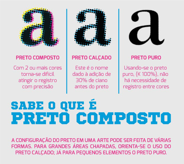 A imagem deve explicar o que é preto composto e o que é o preto puro